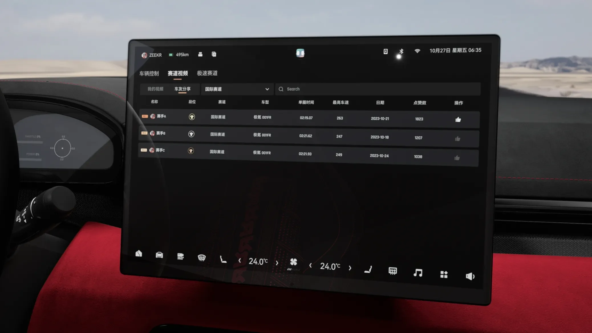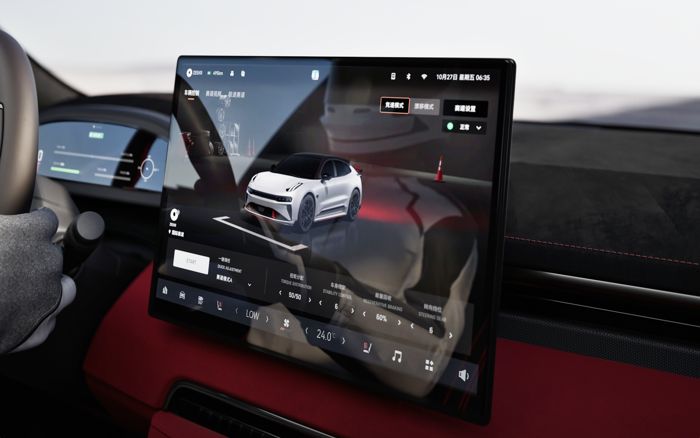 The Zeekr 001 FR is a sport version of the standard Zeekr 001. Built for extreme acceleration and joy of driving. There was a need to design a race companion app to enhance the impression of a ultra fast sport car with features to tune to the car settings, keep track of laptimes, drift mode and visualize G-forces.